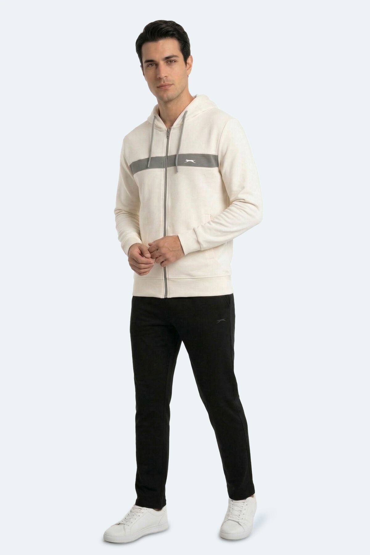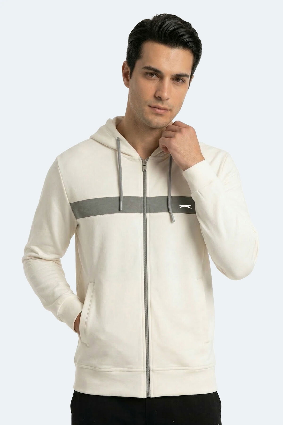 Slazenger KRALON I Erkek Kapüşonlu Cepli Ekru Sweatshırt