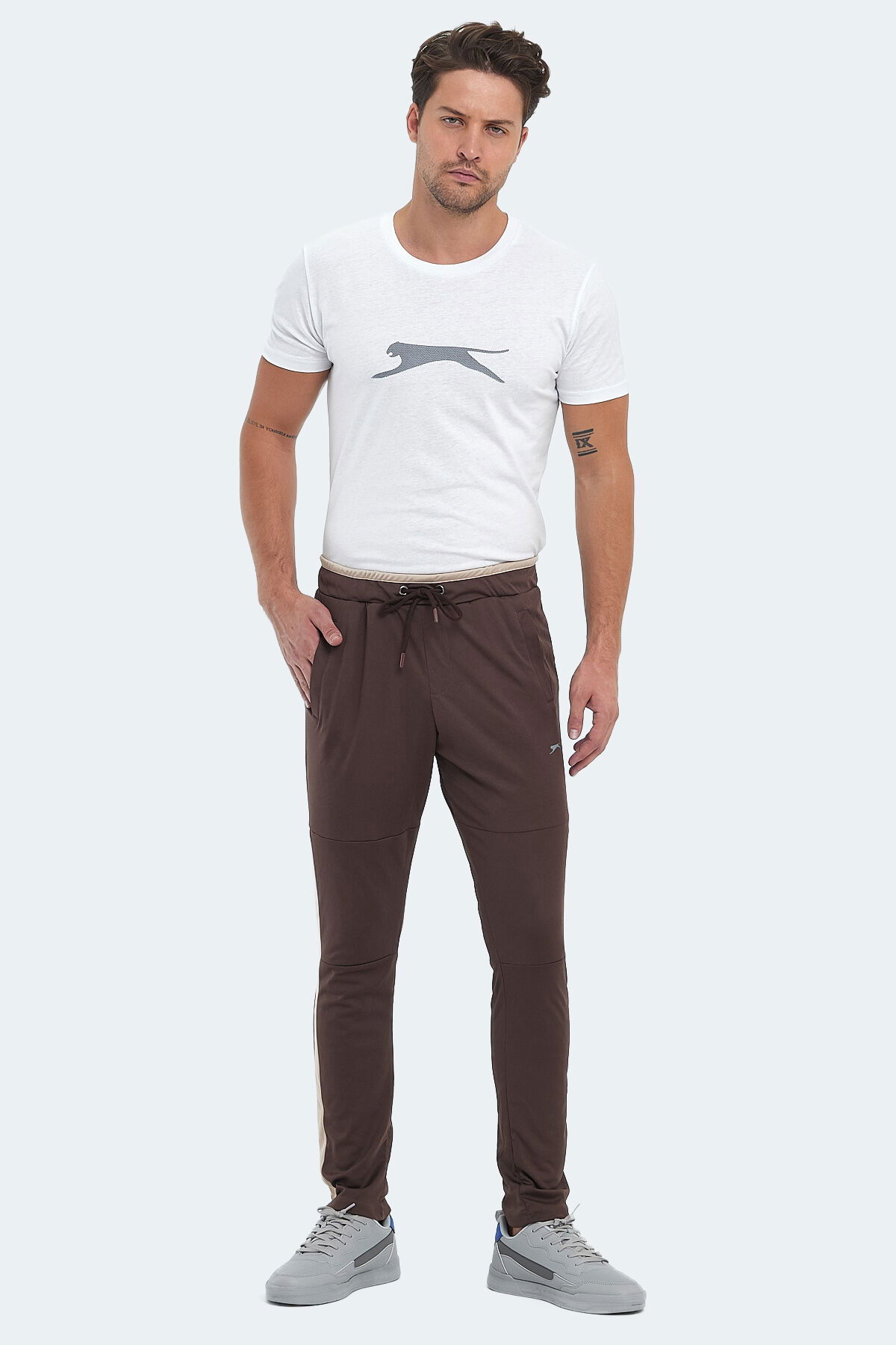 Slazenger OXFORD I Erkek Fermuar Cepli Kahve Eşofman Altı